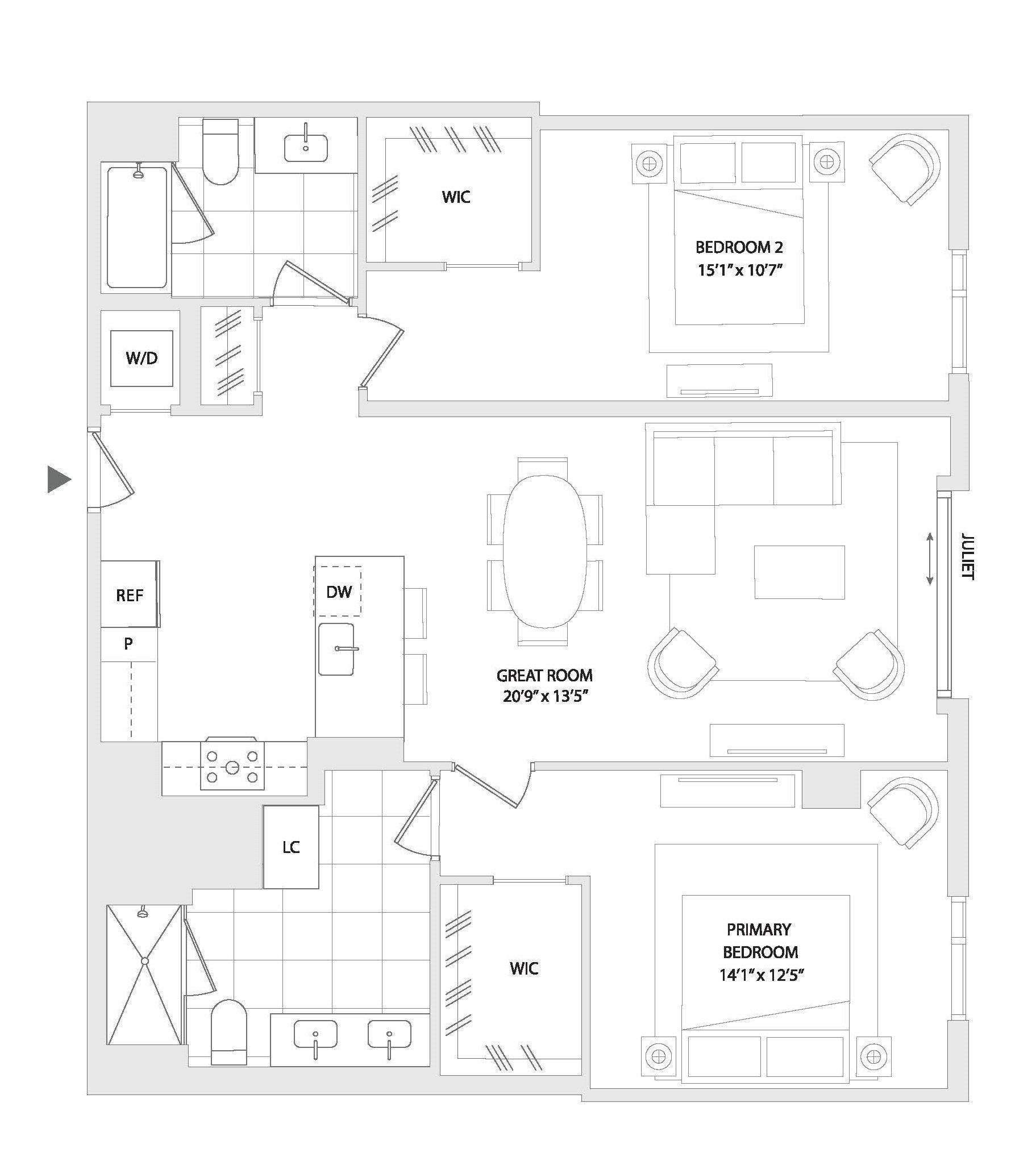 Floor plans are artist’s rendering. All dimensions are approximate. Actual product and specifications may vary in dimension or detail. Not all features are available in every rental home. Prices and availability are subject to change. Rent is based on monthly frequency. Additional fees may apply, such as but not limited to package delivery, trash, water, amenities, etc. Deposits vary. Please see a representative for details..