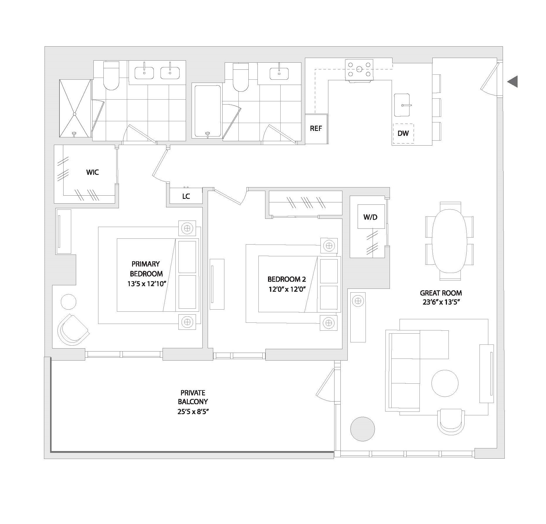 2 Bedrooms  |  2.00 Bathrooms